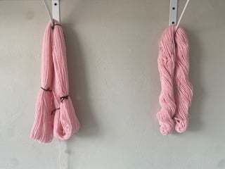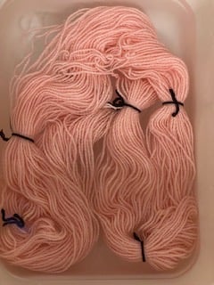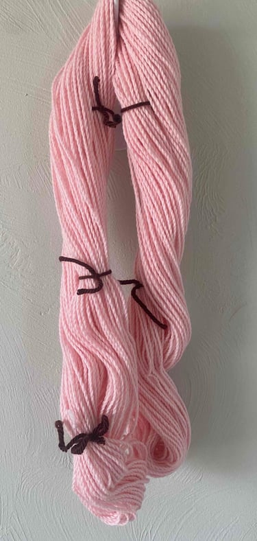 Once I had two bobbins of over twisted "S" yarn, I plied them together going the opposite "Z" direction or clockwise. I wouldn't call my end result balanced, but it definitely looked more like something that I could work with. Since I had never done this before, I wasn't sure how much twist to add. I also wanted to make sure that it wasn't so "splitty" when I went to crochet with it so I may have gone a bit overboard. I continued on filling another bobbin with my final yarn and then put one of my hanks into a warm bath to soak and bloom.